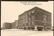 Dorchester High School was founded in 1852 in what was then the independent town of Dorchester, Massachusetts. In 1870, Dorchester was annexed by the City of Boston and Dorchester High came under the jurisdiction of Boston Public Schools.[1] When a new school building on Peacevale Road opened in 1925, the student body was split. Dorchester High for Boys moved to the new facility, while Dorchester High School for Girls remained in the Codman Square building.[2] In a Boston School Committee vote in 1953, the school again became co-educational when the Dorchester High School for Girls was closed.[3] The school existed until 2003, when it was closed by the Boston School Committee to create the Dorchester Education Complex.[4]