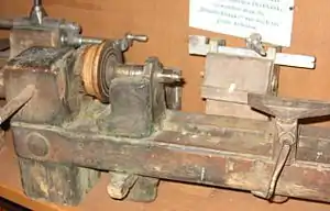 Dorf- und Uhrenmuseum Gütenbach: A homemade wooden lathe used in making wooden wheelblanks for clock movements