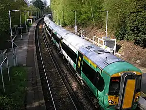 Off-peak, all services at Dormans are operated by Southern using Class 377 EMUs.