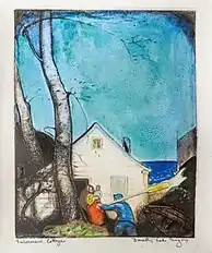Gregory was known for her oil and watercolor paintings, her pen and ink drawings, her etchings, and her lithographs.[1] She also hand colored silver gelatin photographs. An example is "Fisherman's Cottage", shown above, Image No. 6.