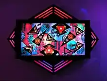 The light sculptures became their main focus and collaboration. In 1969, they converted the studio into a theater, and acquired the technology (a color organ) that made it possible to synchronize the light sculptures with music. Slide projectors using their hand-painted slides, overhead projectors, strobe lights, and the color organ were their new artistic toolbox. Blow-up furniture, water beds, mylar (a reflective material) on the walls, and the light sculptures created a powerful setting. Lumia art was part of the projection as well as an element in several of the light sculptures. The three main elements of lumia, defined by light art pioneer, Thomas Wilfred (1889–1968), are "form, color, and motion in a dark space." The Tanners were not familiar with the Wilfred art work, yet began their lumia art in the time period when Wilfred died in 1968. Originally called Afterimage, the name Lumonics was originated by Dave Robbins in his review, 'Lumonics' A Completely New Art Form in the September 18, 1970 edition of the University of Miami student newspaper, The Hurricane.[11] This was the beginning of the Lumonics Light and Sound Theatre, chronicled in the Michael Betancourt book.[12] The Tanners and a team of helpers presented Lumonics in Miami (1969-1979),[13][14][15][16][17][18][19] San Diego, California (1980-81),[20] Bangor, Maine (1981-82),[21][22][23] and Fort Lauderdale, FL (1988-2009).[24][25][26][27][28][29][30][31] From 1986 to 1987,The Tanners mounted an exhibition at the Patricia Judith Gallery in Boca Raton, Florida, their first exhibition of their light sculptures outside of the Lumonics Theatre. A new wing at the Gallery was added to house their art works.[32][33][34][35][36]