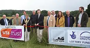 In 2013 DWT led the development of the Great Heath Living Landscape project,[7] a partnership involving Borough of Poole, The Erica Trust, Amphibian and Reptile Conservation (ARC), Poole Harbour Commissioners and Dorset County Council. The project was initiated to enable the purchase of almost 1500 acres of heathland and other habitats from Canford Estate. During its development phase the project expanded to include a three-year access and engagement programme and a suite of sites owned and managed by partners. The project was funded by a grant of £2.7m from the Heritage Lottery Fund[8] and a further £2.1m from partners, other funding bodies and through community fundraising.