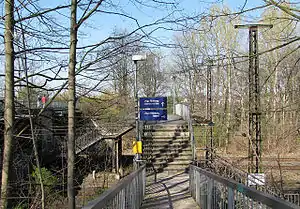 Today the station has no station building anymore; in its place there is the Dortmund-Scharnhorst signal box. The two platforms are connected by an old steel bridge running parallel to the road bridge. At the western end of the station another and more modern pedestrian and cycle bridge also connects the two platforms together.