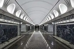 Dostoevskaya (Russian: Достоевская) is a Moscow Metro station in the Meshchansky District, Central Administrative Okrug, Moscow. It is on the Lyublinsko-Dmitrovskaya line, between Maryina Roshcha and Trubnaya stations.