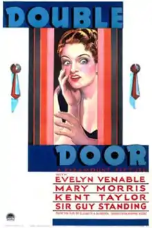 Double Door is a 1934 American pre-Code thriller film[2] directed by Charles Vidor, written by Jack Cunningham and Gladys Lehman, and starring Evelyn Venable, Mary Morris, Anne Revere, and Kent Taylor. The film follows a young bride who finds herself tormented by her wealthy husband's abusive spinster sister in their New York City mansion. It is based on the 1933 Broadway play of the same name by Elizabeth A. McFadden and was billed in the opening credits as "The play that made Broadway gasp". Both Morris and Revere reprised their Broadway roles in the film. Though Morris had a long stage career, this is her only film performance.