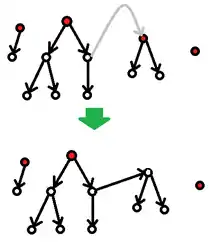 Pitman's proof counts in two different ways the number of different sequences of directed edges that can be added to an empty graph on vertices to form from it a rooted tree. The directed edges point away from the root. One way to form such a sequence is to start with one of the possible unrooted trees, choose one of its vertices as root, and choose one of the possible sequences in which to add its (directed) edges. Therefore, the total number of sequences that can be formed in this way is .[3]