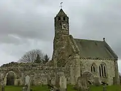 The oldest structure within the village itself is the ruin of St. Bride's Church which, like the castle, originated in the 14th century.[6][7] This church became the mausoleum of the Lords of Douglas. The church clock dates back to 1565 and is said to be Scotland's oldest working public clock.[6][7] It is said to have been given as a gift to the village by Mary, Queen of Scots, after she spent time in the area.[6] The clock is still in working order today, having been repaired and maintained by James Ritchie & Son in 2007/2008.[6][7] The parish church was moved to its present site, near to the old chapel, where the Douglas St Bride's Parish Church still stands. Its congregation now worships at the newer St Bride's Church, built some distance away.