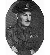 The war came to an end on 11 November 1918 where, just under two weeks before, Graham's first son, Mungo Alan Douglas, was born on 29 October.[1] Graham relinquished his appointment as brigade major on 8 June 1919,[13] and returned to regimental duty on 11 January 1920.[14] From 30 October 1921 he was seconded to the Indian Army as an assistant military secretary.[15] He returned to the United Kingdom and attended the Staff College, Camberley from 1924 to 1925 where, among his many fellow students there were Noel Irwin, Daril Watson, Ivor Thomas, Clifford Malden, Cyril Durnford, Michael Creagh, Thomas Riddell-Webster, James Harter, Sydney Rigby Wason, Langley Browning, Frederick Hyland, Otto Lund, Rufus Laurie, Gerald Fitzgerald, Arthur Barstow, John Reeve, Vyvyan Pope, Robert Studdert, Noel Napier-Clavering, Reade Godwin-Austen, Gerald Brunskill, Archibald Nye, George Lammie, Noel Beresford-Peirse, Gerald Gartlan, Geoffrey Raikes, Humfrey Gale, Guy Robinson and Lionel Finch, along with John Northcott of the Australian Army and Ernest Sansom and Maurice Pope of the Canadian Army. All of these men would, like Graham, become general officers in the future.[1] He was then appointed a staff officer with the 52nd (Lowland) Infantry Division, a Territorial Army (TA) formation, from 19 February 1928.[16][17]