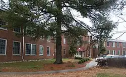From 1929 to 1936, the school housed grades 1–12. In 1931, Douglass School was the first all black county school in Kentucky to receive a Class A Rating.[4] From 1936 to 1948, the school held grades 1–10. In 1951, the elementary school was moved to 465 Price Road to house grades 1–6[5] behind the high school building, designed by the architect John T. Gillig and built in 1947. By the time of the completion of this new high school, there were only 62 public high schools for black students in Kentucky, and only thirteen of these were, like the Douglass School, county facilities.[6] In 1953, four new rooms were added, along with a new lunchroom, auditorium, library, band room and agricultural room.[7]