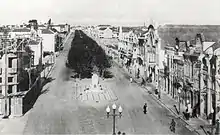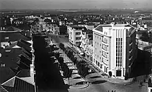 In the middle of the 40s, there were still several empty lots, whose construction was urgent in order to conform the Avenue. Thus, in October 1945, the Municipal Chamber decided to enjoin all owners of land adjoining the public road to build buildings within eighteen months under penalty of the municipality proceeding to its expropriation and sale by public auction, if not complied.[40] This measure, revealing the importance given at the time to the Avenue and the urban space, happened in addition to a previous one (July 1944), in which owners were ordered to repair and whitewash the fronts of their buildings, as well as the walls or gables visible from the public thoroughfare within 90 days.[41] This was an attempt to respond to the appeals of the population, published in the press, to solve the problem of the bad impression caused by the degraded walls, the unfinished gardens, and the vegetable gardens installed on unoccupied land, especially to those who came to the station from the outside.[5][42][43]