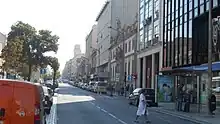 The Avenue would have four lanes, separated by a wide central promenade with two rows of trees along its entire length. This sidewalk also housed the street lighting and several benches, dividing the Avenue into two lateral lanes, flanked by two shorter sidewalks, adjacent to the buildings. This central public space, existing between the two lanes, contributed to people walking and socializing in a large space.[19]