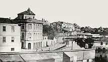 The process of elaboration of an Urbanization Plan for Aveiro (Plano de Urbanização para Aveiro) started in 1944, when legislation on this matter was approved, indicating that the Municipal Chamber would be obliged to make a topographical survey of the city, to gather the elements for an urban study.[45] In early 1945, the architect David Moreira da Silva was commissioned to elaborate the Urbanization Plan, and the first results of this work were presented in September 1948, in the Urbanization Draft for the City of Aveiro (Anteplano de Urbanização da Cidade de Aveiro), approved in the same month. The Draft was controversial, for some proposals, and generated an intense discussion in the city around urban planning issues.[5] The most striking in this chapter are those concerning the transformation of the central area of the city: the creation of the Ponte Square (now General Humberto Delgado Square) and the widening of Coimbra Street, which would involve several demolitions: