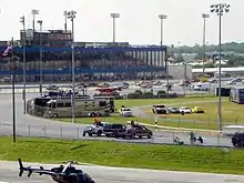Dover Motor Speedway (formerly Dover Downs International Speedway and later Dover International Speedway) is a race track in Dover, Delaware. The track has hosted at least one NASCAR Cup Series race each year since 1969, including two per year from 1971 to 2020. In addition to NASCAR, the track also hosted USAC[5] and the Indy Racing League. The track features one layout, a 1 mile (1.6 km) concrete oval, with 24° banking in the turns and 9° banking on the straights. The speedway is owned and operated by Speedway Motorsports.