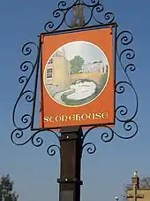 In 1838 the whole parish (including Cainscross and Ebley and Westrip) had a total of 33 public houses and beerhouses and in 1891 there were 21 public houses.[19] In the village of Stonehouse in 1901 there were about 14.[20] In 2018 there are two – The Woolpack and The Globe which both date from the early 19th century. The Woolpack Inn is one of the oldest buildings in Stonehouse, developed from 16th-century cottages and barns. It catered for the wool traders and farmers whereas the Crown and Anchor in the middle of the town (now a doctors' surgery) was the main coaching inn where the Bath coach stopped. The Spa Inn on Oldends Lane was one of Stonehouse's oldest public houses, developing from 16th-century cottages. During the 19th century it was selling mineral water from its well and a pump room was added. Gradually the Spa business faded and it became a beerhouse. It was a successful pub during the 20th century, but was closed early in 2013 after a succession of landlords and then sold by the brewery Wadworths in 2014.[21]