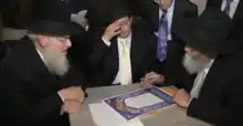 ![]() Rabbi Dovid Grossman at a student's wedding. Pictured (left-right): Rabbi Eliezer Gross (Rosh Yeshiva of Yeshiva Gedolah of Los Angeles), Rabbi Reuven Chaim Klein, and Rabbi Dovid Grossman. | |