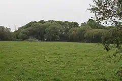 Down End Castle was built at Down End, north of Dunball in Somerset, England.[2] The castle has a motte and bailey design, with the two baileys lying to the north of the motte; the inner bailey has one bank and the outer one a double bank.[3] The mound measures 30 metres (98 ft) across the top, and may have exploited an existing Viking site. The castle was once fed water by a natural spring at the base of the motte.[4]