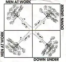 "Down Under" is a song recorded by Australian rock band Men at Work. It was originally released in 1980 as the B-side to their first local single, "Keypunch Operator", released before the band signed with Columbia Records. Both early songs were written by the group's co-founders, Colin Hay and Ron Strykert.[5] The early version of "Down Under" has a slightly different tempo and arrangement from the later Columbia release.[6] The best-known version was then released on Columbia in 1981 as the second single from their debut album Business as Usual (1981).