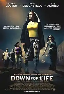 Down for Life is a 2009 American dramatic film directed by Alan Jacobs based on the true story of a 15-year-old Latina gang leader in Watts, Los Angeles. The story follows one day in her life as she struggles to break away from her gang. Made in cinéma vérité style, the film stars many local teens, with veteran actors such as Danny Glover, Laz Alonso, Kate del Castillo, and Snoop Dogg in supporting roles. Down for Life focuses on the gritty reality of gang life and the racial tension surrounding it. Ultimately, the film’s message is one of hope to those in tough circumstances while shedding light on a pressing social issue.