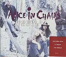 "Down in a Hole" is a power ballad[2] by Alice in Chains, and the fifth and last single from their album Dirt (1992). It is the twelfth song on most pressings of the album and fourth or eleventh on others.[3] The song was written by guitarist and vocalist Jerry Cantrell for his then-girlfriend, Courtney Clarke.[4] The single spent 21 weeks on Billboard's Mainstream Rock Tracks and peaked at No. 10.[5] The song was included on the compilation albums Nothing Safe: Best of the Box (1999) and Music Bank (1999). An acoustic version performed on Alice in Chains' MTV Unplugged in 1996 was released in a live album and DVD.