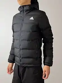 The down jacket, known more commonly in the fashion industry as a puffer jacket or simply puffer, is a quilted coat which is insulated with either duck or goose feathers. Air pockets created by the bulk of the feathers allow for the retention of warm air.[1]