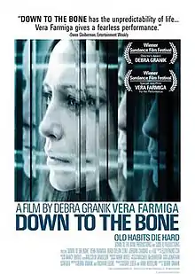 Down to the Bone is a 2004 American independent drama film, directed by Debra Granik and written by Granik and Richard Lieske. It stars Vera Farmiga, who received a Best Actress Award from the Los Angeles Film Critics Association for her role as the drug addicted Irene. The film premiered at the Sundance Film Festival on January 15, 2004, where it won the Director's Award (Granik) and the Special Jury Prize for Acting (Farmiga). The film received a limited release in the United States on November 25, 2005.