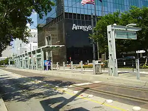 Downtown Transit Center is a bus and light rail transportation center in Downtown Houston, Texas, United States, operated by the Metropolitan Transit Authority of Harris County, Texas (METRO). It includes an island platformed METRORail light rail station and bays for bus service.