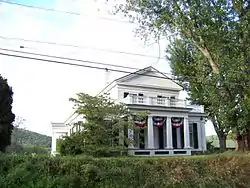 The Dr. Hovey Everett House is a Greek Revival style house in the hamlet of Lowman in the town of Chemung, New York. It is significant both for its architecture and for its association with the life of Dr. Hovey Everett, who practised medicine in the area including Lowman and nearby Elmira, New York for forty years, from his arrival in the area in 1821 until his death in 1861. The house was built in 1827 as a wedding present for Dr. Everett upon his marriage to Cynthia Lowman, of the family for whom the town was named. The house and related buildings and structures were added to the National Register of Historic Places in 2007.[2]