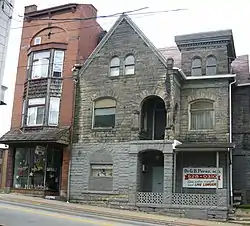 Dr. J.C. McClenathan House and Office, also known as the Medical Center Building, is a historic home and doctor's office located at Connellsville, Fayette County, Pennsylvania. It was built about 1895, and is a 2+1⁄2-story building with Richardsonian Romanesque and Queen Anne style design details. The stone-clad building features a two-story inset porch, a sloped stone parapet, and three-story tower with decorative frieze.[2]