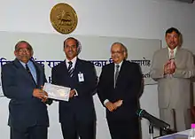 In 2007, Pradhan received the Indian Express[5] Citizen for Peace[6] prize from Shyam Benegal for his essays on communal harmony.[7] He has also won First Prize in All-India Inter-bank Hindi Essay Competition for 2007–08,[8] a prize he also won in 2006–07[9] for his essays on micro-finance and financial inclusion. He also won First Prize in the RBIA Silver Jubilee essay competition on Future of Central Banking conducted by Reserve Bank of India in 2007–08. He was the First Prize winner in RBI Brand Building Competition, 2007 for his bold satirical essay "Dreaming the RBI Brand", which created shock waves in the Reserve Bank fraternity. During his student days he had won many literary prizes including Upasika Kamaladevi Award for essays on Buddhism, Shatadru prize for short story and Ankur prize for poetry etc. He was Utkal University literary champion during 1993–94. Pradhan's poem "The Buddha Smiled" won commendation first prize in All India Poetry Competition 2013[10] conducted by Poetry Society (India).