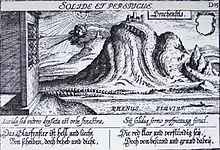 Another legend tells of prisoners being sacrificed to a dragon. One of these was a Christian virgin, who, in her fear, held up a little cross. In fear of this holy symbol, the dragon jumped into the Rhine and was never heard from again.