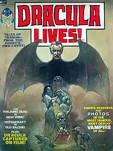 Dracula Lives! was an American black-and-white horror comics magazine published by Magazine Management, a corporate sibling of Marvel Comics. The series ran 13 issues and one Super Annual from 1973 to 1975, and starred the Marvel version of the literary vampire Dracula.[1]