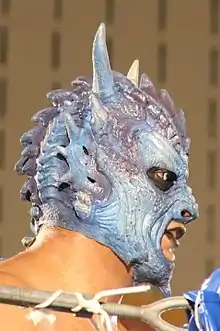 In August 2014, Drago was announced as one of five AAA wrestlers to star in Lucha Underground, a new American television series on El Rey.[27] Drago debuted on the third episode on November 12, losing a three-way main event involving Pentagón Jr. and winner Fénix.[28] Over the following weeks, Drago feuded with King Cuerno. On January 21, 2015, Cuerno defeated Drago in a Last Man Standing match, ending their feud. Then, he defeated Aero Star in a Best of 5 Series match. On February 21, 2015, Drago unsuccessfully challenged Prince Puma for the Lucha Underground Championship after Hernandez' interference cost him the match. As a result, Drago was in storyline forced to leave Lucha Underground.[29] Drago returned on the June 10 episode, agreeing to put his mask on the line for another shot at being allowed to remain in Lucha Underground. Drago went on to win the match, defeating Cage, Hernandez and King Cuerno to retain his mask and become the number one contender to the Lucha Underground Championship.[30] However, next week, Drago lost his opportunity against Mil Muertes after an interference from Hernandez. Soon after, Drago faced Hernandez and won via disqualification, before a rematch between the rivals would be announced for the upcoming Ultima Lucha event. At the first night of Ultima Lucha, Drago defeated Hernandez in a Believer's Backlash Match. At the season two Ultima Lucha on January 31, 2016, Drago, Aero Star and Fénix defeated Jack Evans, Johnny Mundo and P. J. Black to win the Lucha Underground Trios Championship.[31] On May 7, Drago turned on Aero Star and Fénix and turning heel and took the Lucha Underground Trios Championship to form a new championship trio with Pindar and Vibora.[32]
