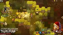 A range of activities can be pursued including fishing, crafting, gathering, mining, digging, and cooking.[3][4] Players have 20 slots in which to store equipment and other useful items,[3] are able to dual-wield weapons,[3] and can acquire pets to join them in the game.[4] The world includes many different locations to explore including forests, caves, mines, deserts, mansions, castles, and ruins. The climate in the game is randomly generated which affects both the weather and earthquakes in each area.[6]