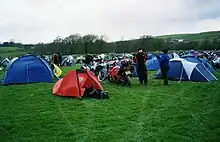 The Dragon Rally is a motorcycle camping rally held annually during winter in North Wales since 1962,[2] making it one of the UK's longest running bike events. In the 1960s the attendance at the Dragon sometimes topped 3,000 riders;[3] more recently the figure ranged from 1,500 to 2,000 depending on the weather and location. The rally is famed for its toughness and spartan facilities.[4] Riders often have to endure miserable riding conditions to attend the rally and, once on site, they are expected to camp without regard to the weather conditions. It is an event held in veneration by large numbers of motorcyclists as a test of stamina and endurance because (in the first two decades at least) it was common to have to endure snow and ice to ride there. The Dragon is often grouped with the German Elefantentreffen (Elephant Rally) and the Norwegian Krystall Rally.
