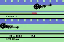 Dragster, released in 1980 for the Atari Video Computer System, is one of the first video games developed by Activision. It was programmed by David Crane, who later wrote Pitfall!.[1] The objective of the game is to either beat the player's opponent across the screen or to race against the clock for best time, depending on the settings used. Dragster is an unauthorized adaptation of the 1977 Kee Games coin-op Drag Race.[3]