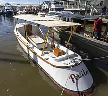 A draketail is a Chesapeake Bay boat that features a sloping transom that meets the waterline at a sharp angle, usually rounded in plan. The feature could be found in 1920s workboats such as the Chesapeake Bay deadrise and in smaller skiffs. The configuration was inspired by World War I destroyer designs.[1][2]