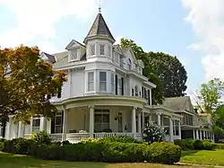 Draper House is a historic home located at Milford, Sussex County, Delaware. It was built in 1870, and is a two-story, five bay, center hall, frame dwelling originally built in the Victorian Gothic style. It was remodeled in the early-20th century with elements of Queen Anne and Classical Revival building traditions. It has a hipped roof with dormers, a telescoping turret, a truncated tower, a second floor projecting bay with a Palladian window, and a full three-sided porch with a shadow curve supported by Ionic order columns. From 1948 to 1953, it was owned by the Milford Hospital and used by them as housing for nurses.[2]