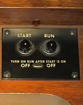 Before a Hammond organ can produce sound, the motor that drives the tonewheels must come up to speed. On most models, starting a Hammond organ involves two switches. The "Start" switch turns a dedicated starter motor, which must run for about 12 seconds. Then, the "Run" switch is turned on for about four seconds. The "Start" switch is then released, whereupon the organ is ready to generate sound.[28][29] The H-100 and E-series consoles and L-100 and T-100 spinet organs, however, had a self-starting motor that required only a single "On" switch.[30] A pitch bend effect can be created on the Hammond organ by turning the "Run" switch off and on again. This briefly cuts power to the generators, causing them to run at a slower pace and generate a lower pitch for a short time. Hammond's New B3 contains similar switches to emulate this effect, though it is a digital instrument.[31][32]