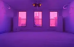 Since 1993, a long-running version of the exhibition located above the couple's 275 Church Street loft has been open to the public for lounging, immersive listening, and meditation.[4] This version has recently employed a new configuration and musical piece featuring Young and Zazeela's associate Jung Hee Choi,[8] titled Ahata Anahata, Manifest Unmanifest X and featuring alternate visuals.[9] In 2015, a unique version of Dream House was established by the Dia Foundation at West 22nd Street in New York.[2] Current iterations of Dream House are currently run by Young and Zazeela's MELA (Music Eternal Light Art) Foundation.[4]