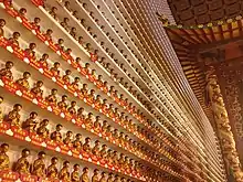 In East Asia this subject became popular by itself, the most famous and one of the earliest at the Todaiji in Nara, Japan.[30] Buddha's first bath is also sometimes shown in the same scene; two Nagaraja (Nāga kings) perform the bathing, and maids may attend.[31] Symbolic re-enactments of this form part of the rituals celebrating Buddha's birthday or Vesak in many countries.[32]