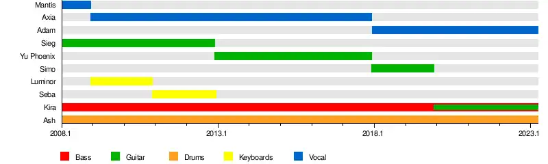 | Past members | Mantis Sieg Seba Axia Yu Phoenix Luminor † |