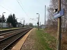 Of the six Freital stations, Freital-Potschappel station is the most important.[29] The Niederhermsdorfer Kohlezweigbahn ("Niederhermsdorf coal branch railway") branched off here to two coal shafts from 1856 onwards. Its route was used in the construction of the 750 mm gauge Potschappel–Wilsdruff railway opened in 1886. Extensive goods and transhipment facilities were built In Potschappel, which were further expanded during the elevation of the line and its quadruplication after 1900.[30]