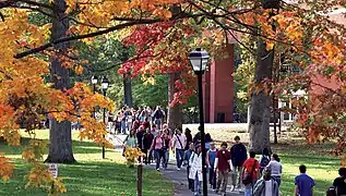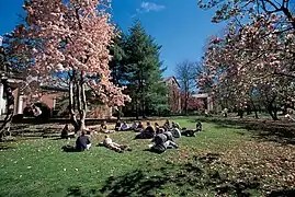 With financial assistance from the Mellon Foundation, the college established a freshman seminar program during the 1970s, which allows first-year students to participate, with faculty who also serve as their academic advisers, in intensive study of a topic of hopefully mutual interest.[36] Interdisciplinary study became a focus of the curriculum as well, with the creation of majors in neuroscience and minors in such fields as American studies and museology, dance, and writing.[37]