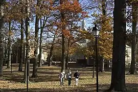 Drew's academic buildings feature a mix of Greek Revival, Collegiate Gothic, and neoclassical architecture on a 186-acre (75 ha) campus that is a serene, wooded oasis in the middle of a bustling suburban town. The campus features the Drew Forest Preserve, an 80-acre (32 ha) expanse that was recently restored with the planting of 1,100 native trees and shrubs by the university community and volunteer assistance from pharmaceutical manufacturer Pfizer (a large, local employer), the US Fish and Wildlife Service, the New Jersey Audubon Society.[24] The university's campus also features the Florence and Robert Zuck Arboretum, named for two botany faculty members, containing a mixture of native and non-native trees, plants and two small glacial ponds supporting populations of turtles, goldfish, catfish, and muskrats, and various species of birds including migratory fowl such as Canada geese, ducks, and herons.[24][25]