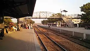 The station is a stop for a few trains going "upcountry" and all "down country" express trains. In the past, it was a junction on the Karachi Circular Railway.[2] The station has a booking office, train shed, tuck shop, mosque, advance reservation office, and a parking lot.