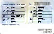 Driving licenses in Israel come in twelve types, similar to the European driving license (although small differences exist). To receive a license, each applicant must pass a medical and eye checkup, and a theoretical test, before taking a number of practical lessons culminating in the practical test.