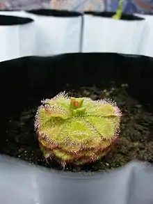 | A fully mature Drosera admirabilis. Note the emerging flower stalk from the center. | |