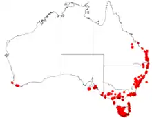 D. binata occurs naturally in Australia, primarily in coastal areas from Fraser Island in Queensland, southwards down through New South Wales and Victoria to Tasmania and the south-east corner of South Australia. The range of this species extends to New Zealand where it is common below an elevation of 1000 metres, being found in both the North and South Islands, Stewart Island/Rakiura and farther afield on the Chathams.[4] Some populations go dormant in the winter, while others are truly tropical.