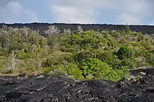 Extensive lava flow from volcanoes fragments the geographical distribution of this species around the island.[14] The flow of lava creates kipukas, isolated habitable patches of vegetated land,[14] which can range from several square meters to several square kilometers in size.[15] D. silvestris inhabits high-altitude, cool rainforests on the slopes of all five volcanoes in Hawaii (Mauna Kea, Mauna Loa, Kilauea, Hualalai and Kohala), specifically in altitudes ranging from 900–1,500 m (3,000–4,900 ft).[16] The most ancestral populations of this fly species are found on Hualalai, the third youngest volcano on the island.[17]