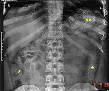 Routine detection of the smuggled packets is extremely difficult, and many cases come to light because a packet has ruptured or because of intestinal obstruction. Unruptured packets may sometimes be detected by rectal or vaginal examination, but the only reliable way is by X-ray of the abdomen. Hashish appears denser than stool, cocaine is approximately the same density as stool, while heroin looks like air.[11][12]